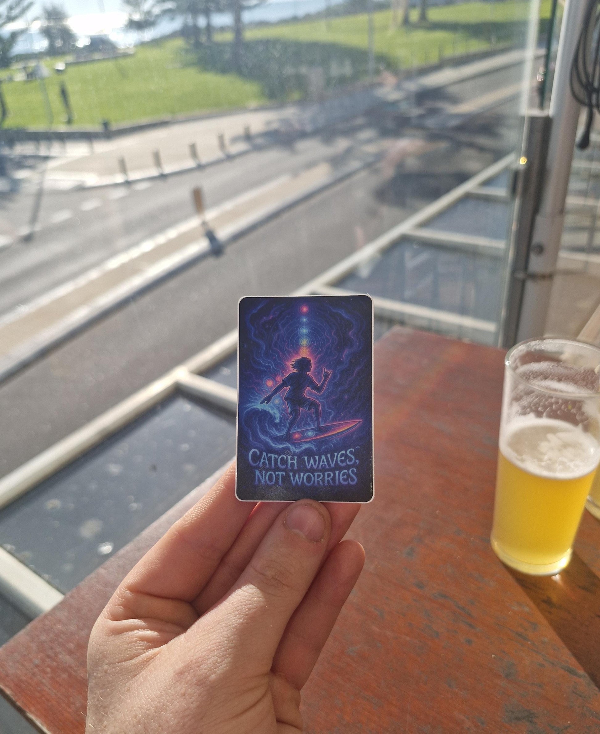 Ride the good vibes 🌊✨ This Catch Waves Not Worries sticker brings laid-back coastal energy wherever you stick it. Perfect for surfers, beach lovers, and anyone chasing sunshine over stress.
